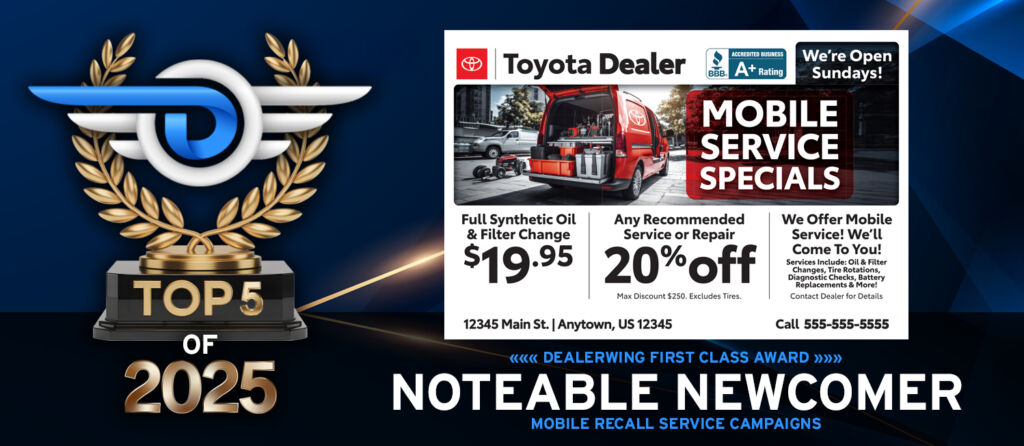Dealerwing specializes in AI-driven marketing solutions designed to increase service retention, optimize ad spend, and drive measurable results. Let’s build a smarter, more profitable marketing strategy for your dealership today.
