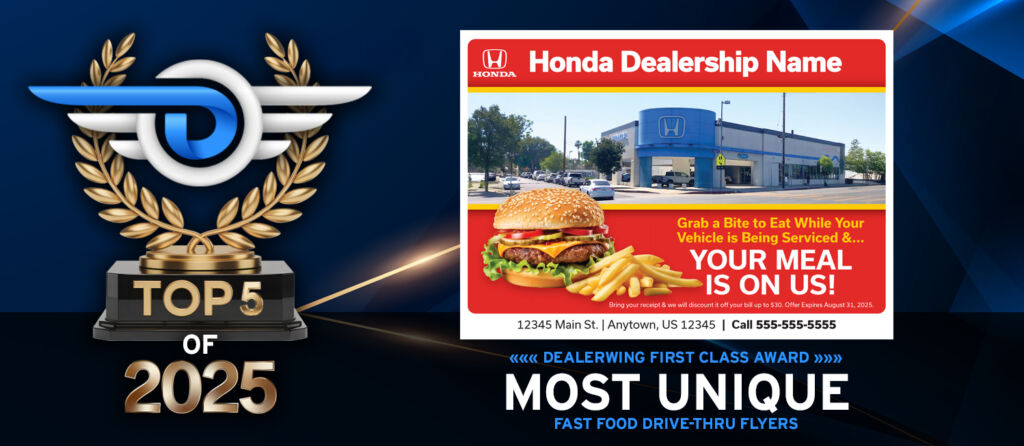A Los Angeles based Honda service drive turned their unique location – close enough to a popular fast food chain that the line of cars wrapped around their dealership – into a unique opportunity. With customers constantly circling their building, they started handing out flyers to Honda drivers offering a complimentary meal with any service appointment.